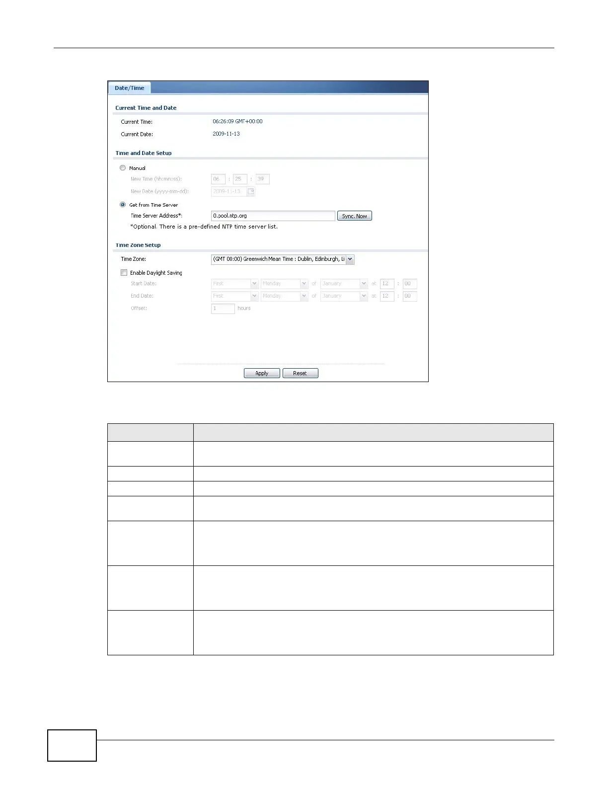 Manual Select this radio button to enter the time and date manually. If you configure a new time