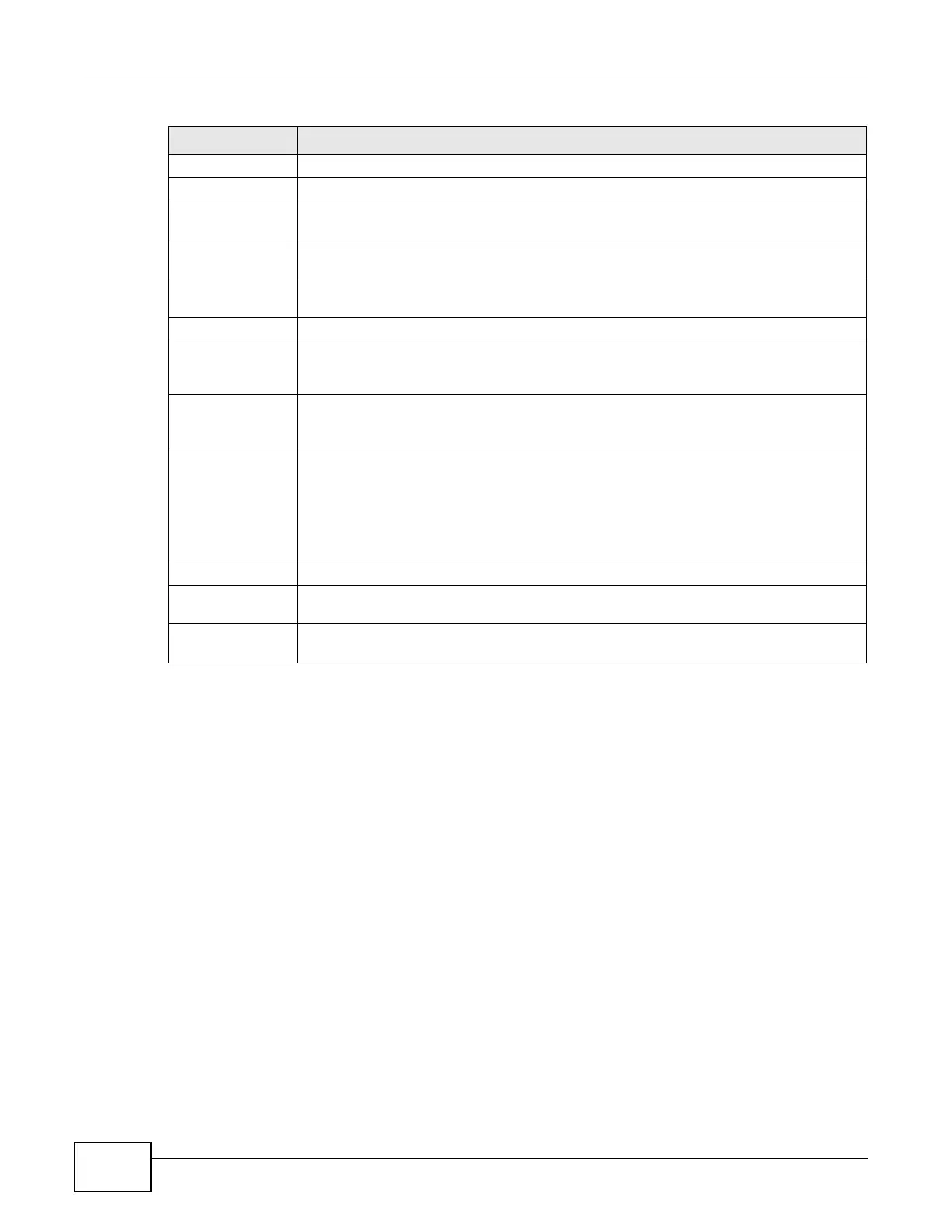 The entry with a hyphen (-) instead of a number is the ZyWALL’s (non-configurable)