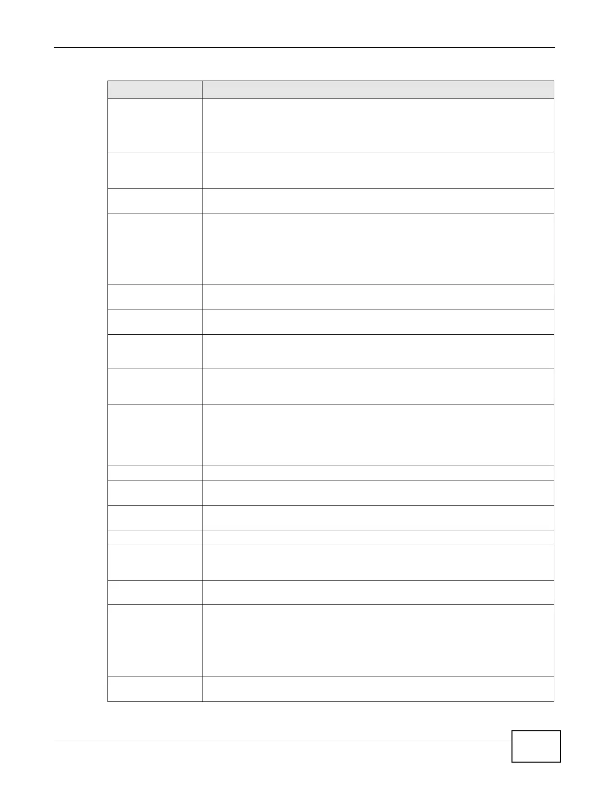 The entry with a hyphen (-) instead of a number is the ZyWALL’s (non-configurable)