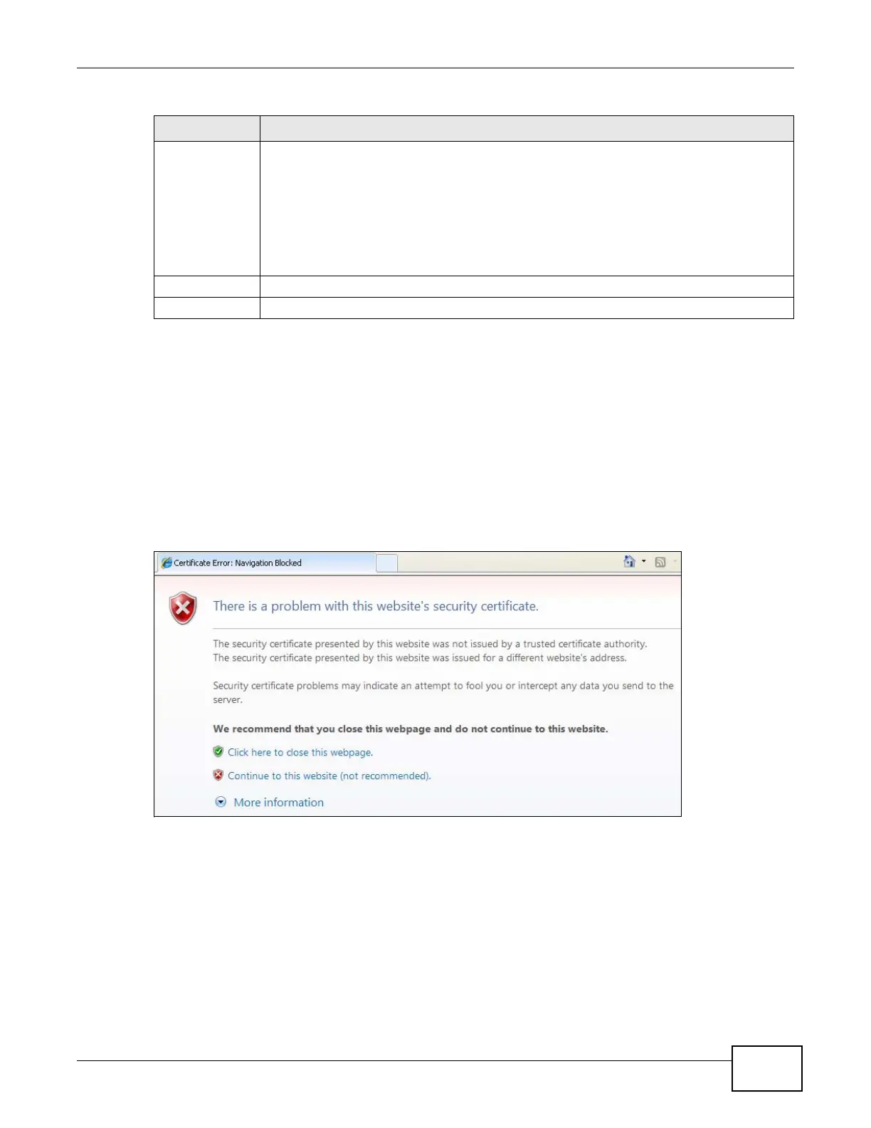 When you attempt to access the ZyWALL HTTPS server, you will see the error message shown in the