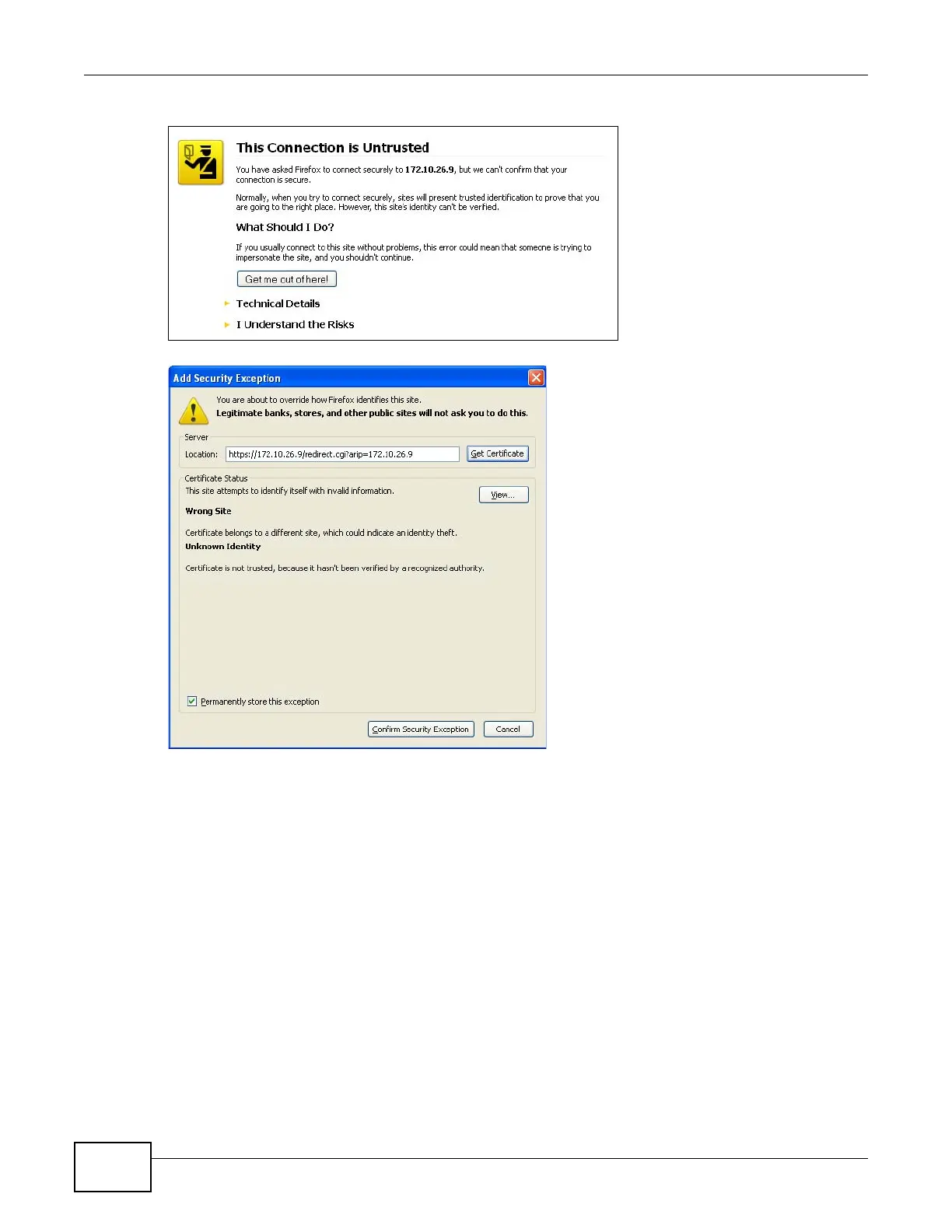 Figure 310 Security Certificate 1 (Firefox)