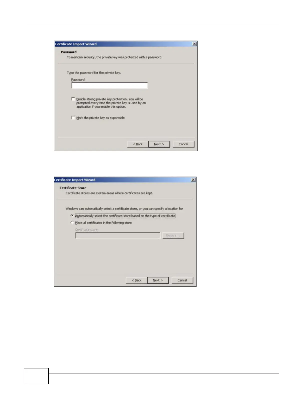 4 Have the wizard determine where the certificate should be saved on your computer or select Place