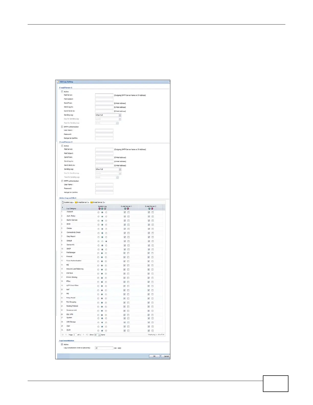 includes the e-mail profiles). Go to the Log Settings Summary screen (see Section 38.3.1 on