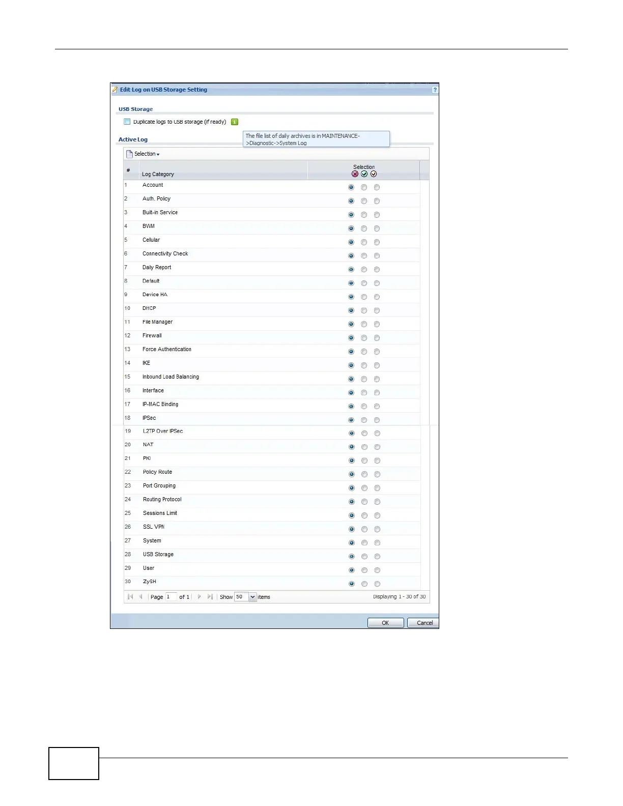 Figure 339 Configuration > Log & Report > Log Setting > Edit (USB Storage)