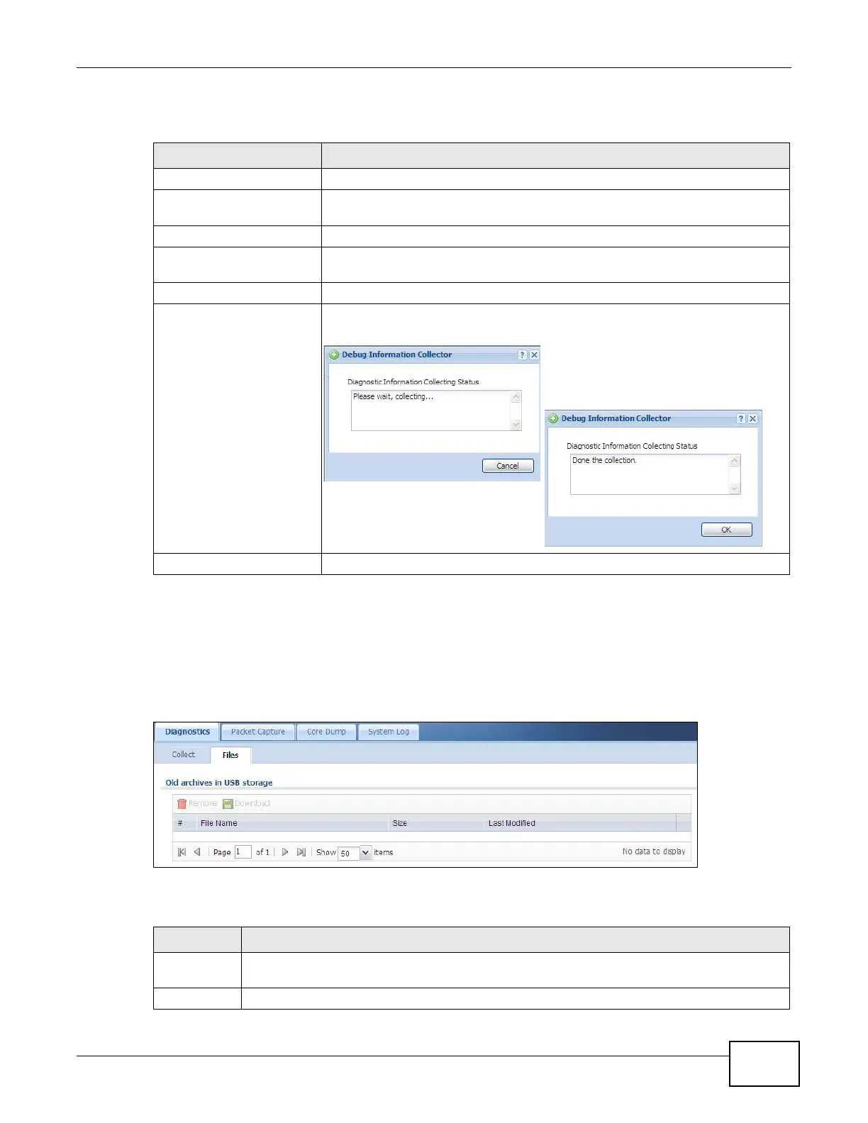 Collect Now Click this to have the ZyWALL create a new diagnostic file.