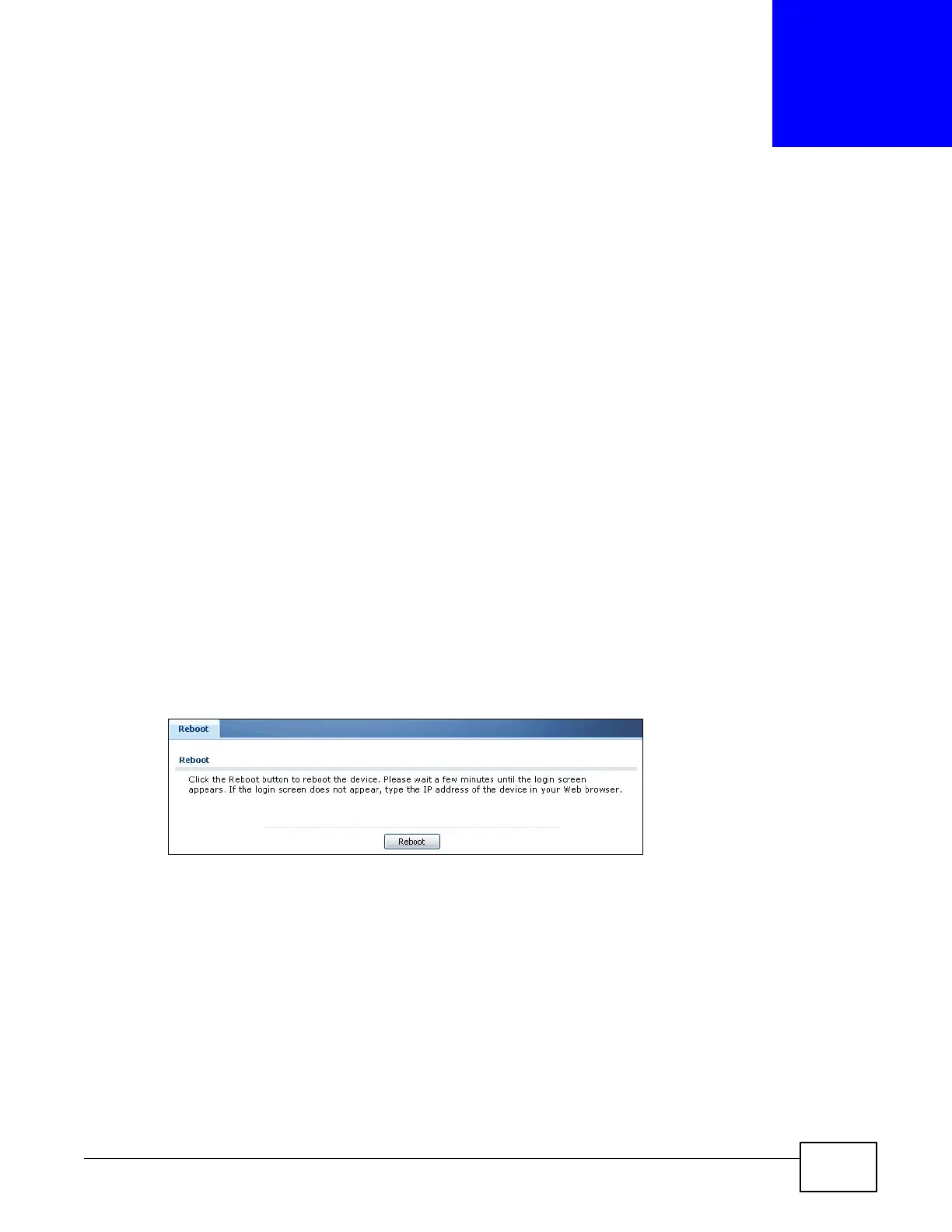 Click the Reboot button to restart the ZyWALL. Wait a few minutes until the login screen appears.