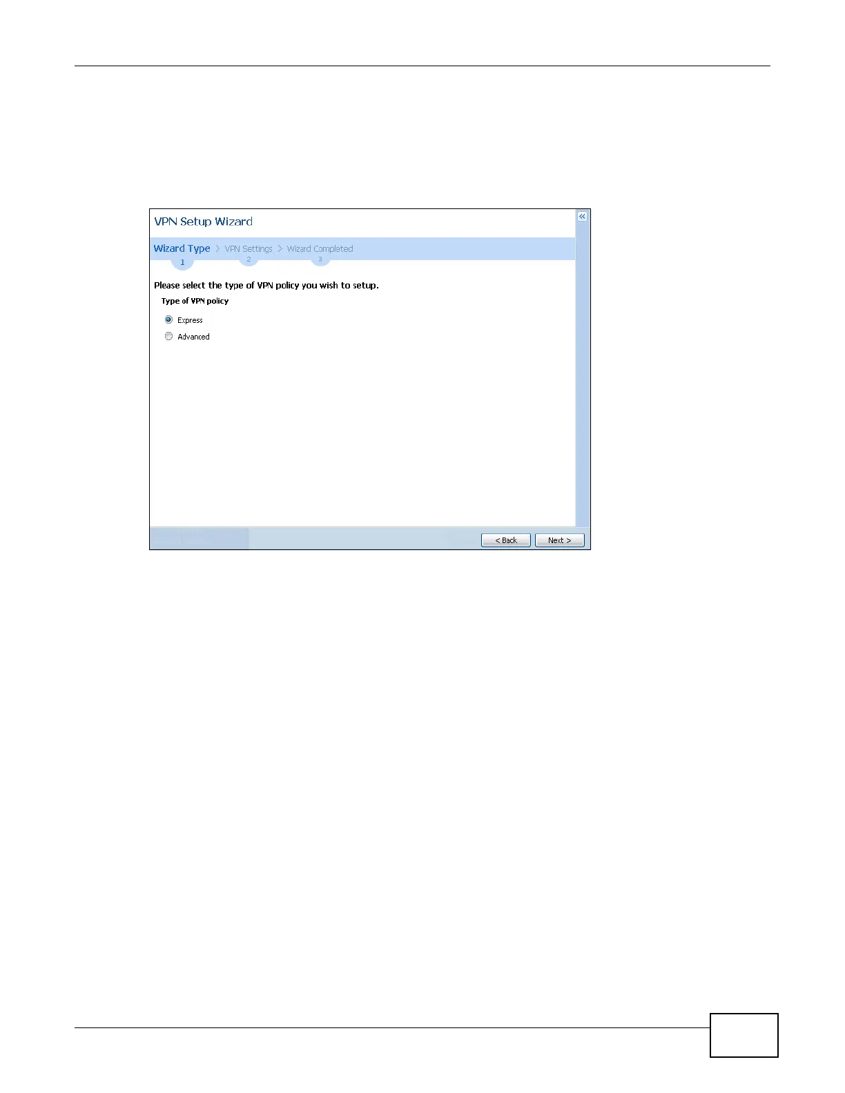 Choose Express to create a VPN rule with the default phase 1 and phase 2 settings and to use a