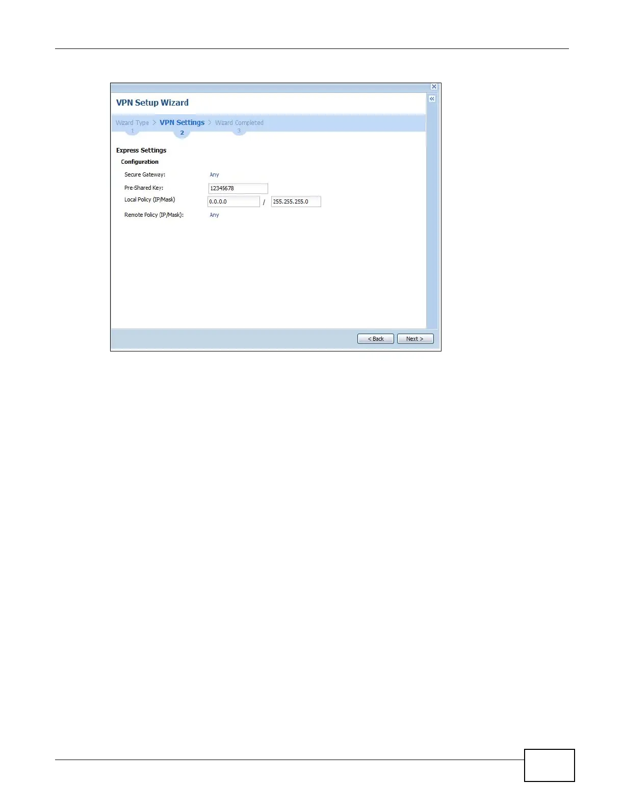 • Secure Gateway: Any displays in this field because it is not configurable in this wizard. It allows