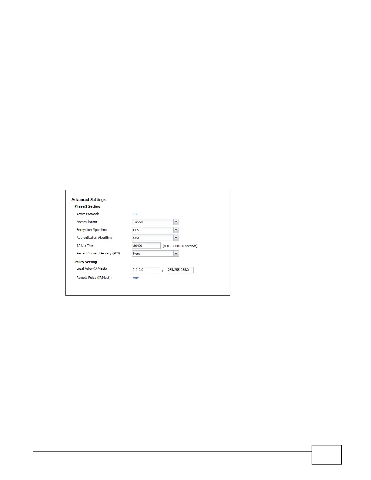 • Perfect Forward Secrecy (PFS): Disabling PFS allows faster IPSec setup, but is less secure.