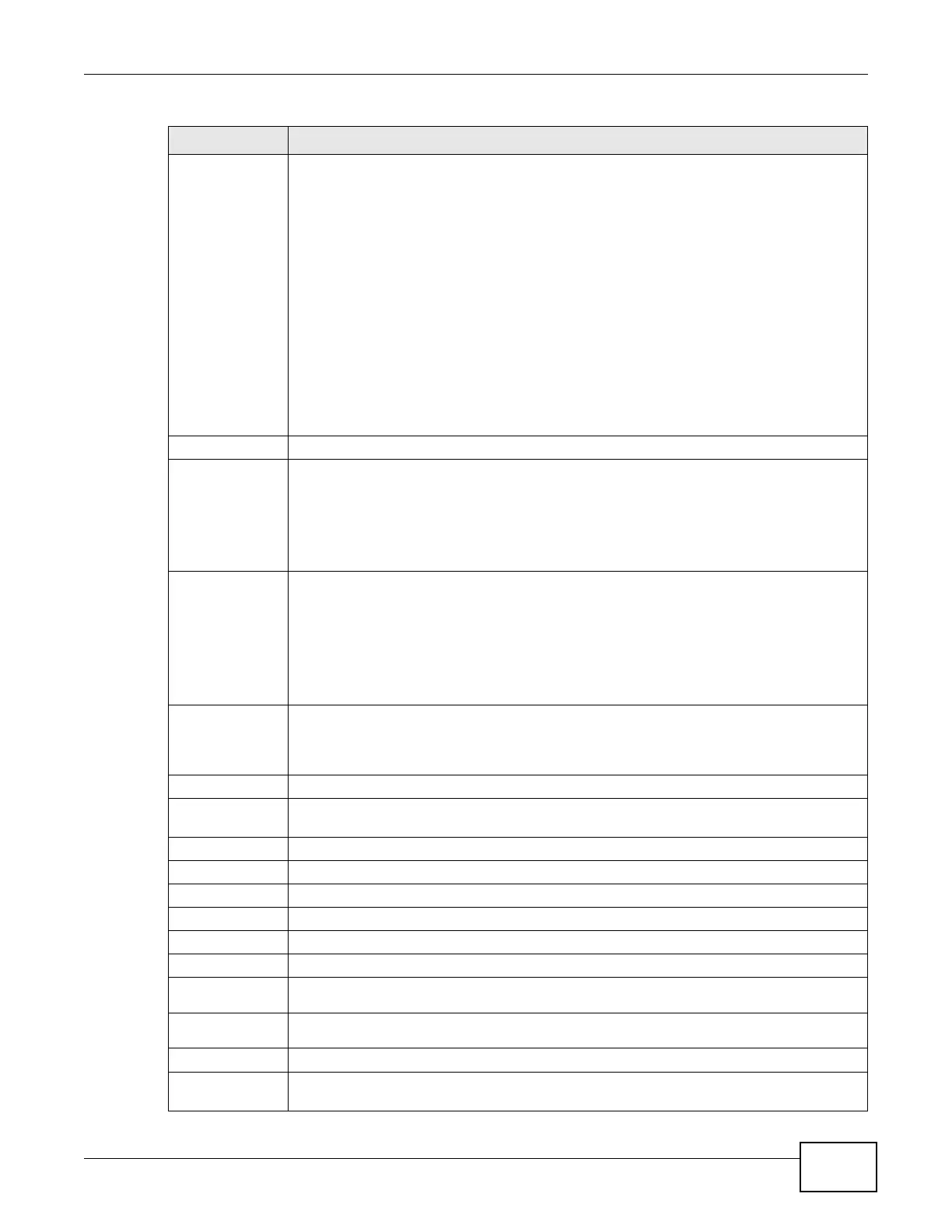Status This field displays the current status of each interface. The possible values depend on what
