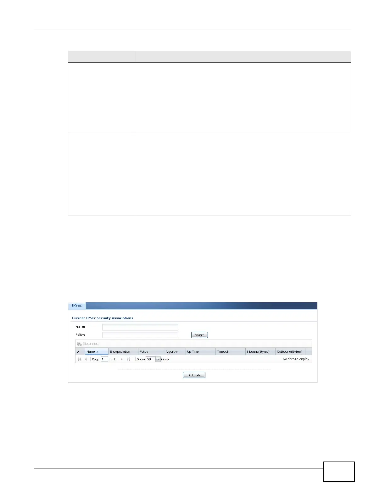 screen, click Monitor > VPN Monitor > IPSec. The following screen appears. SAs. Click a