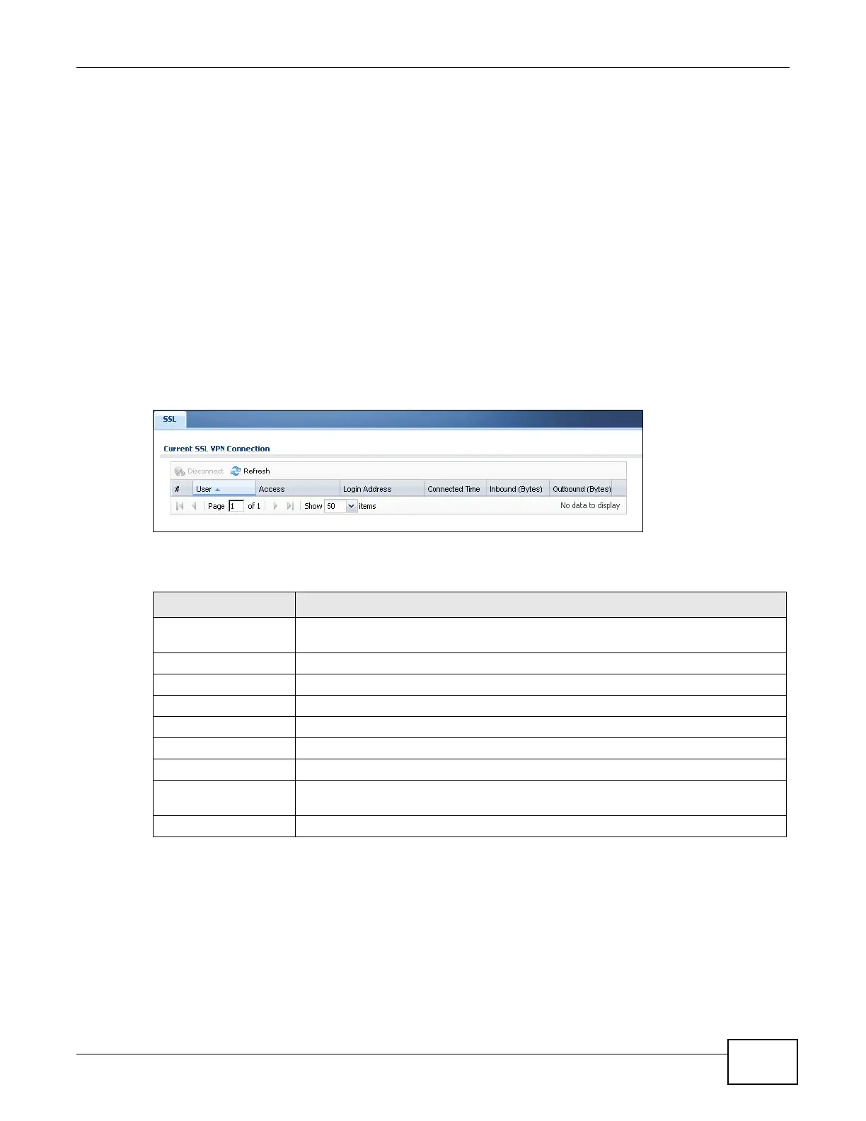 The ZyWALL keeps track of the users who are currently logged into the VPN SSL client Click