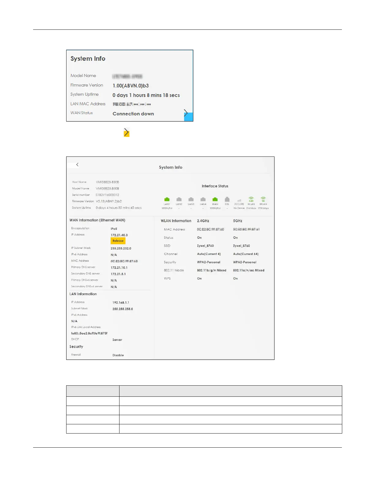 Click the Arrow icon ( ) to view more information on the status of your firewall and interfaces (WAN,