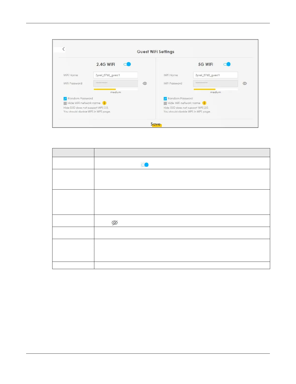 WiFi Password If you selected Random Password, this field displays a pre-shared key generated by the Zyxel