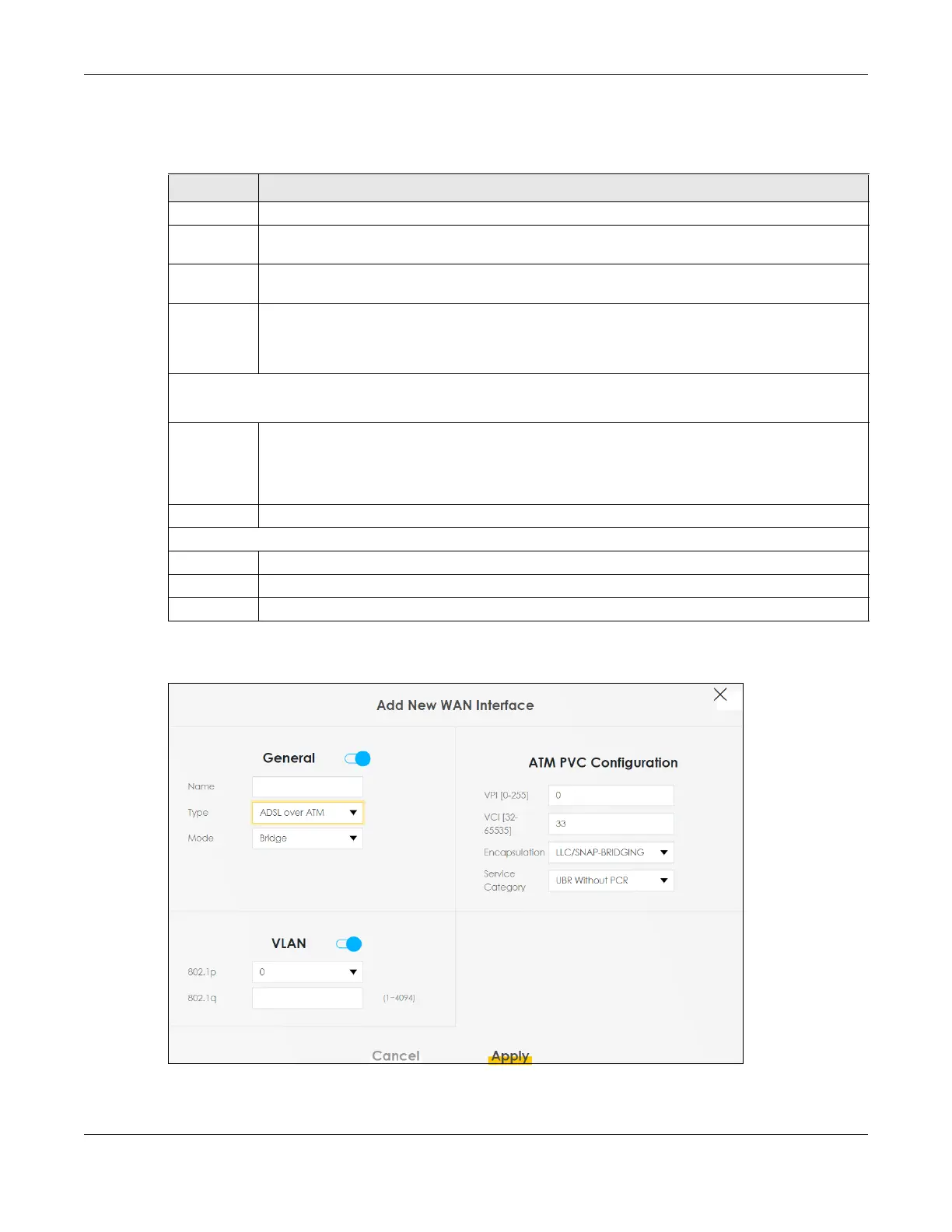 Table 37 Network Setting > Broadband > Add/Edit New WAN Interface (ADSL/VDSL over PTM or