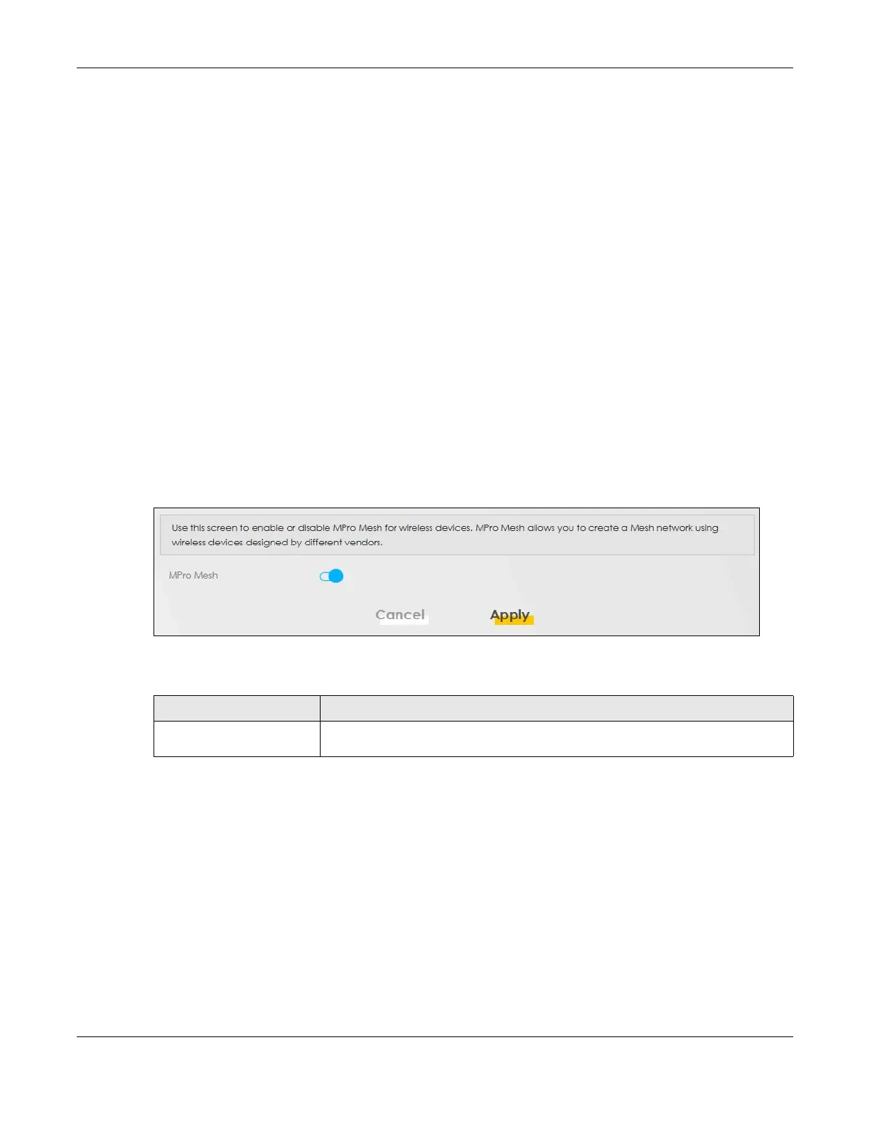 Use this screen to enable or disable MPro Mesh on theZyxel Device.