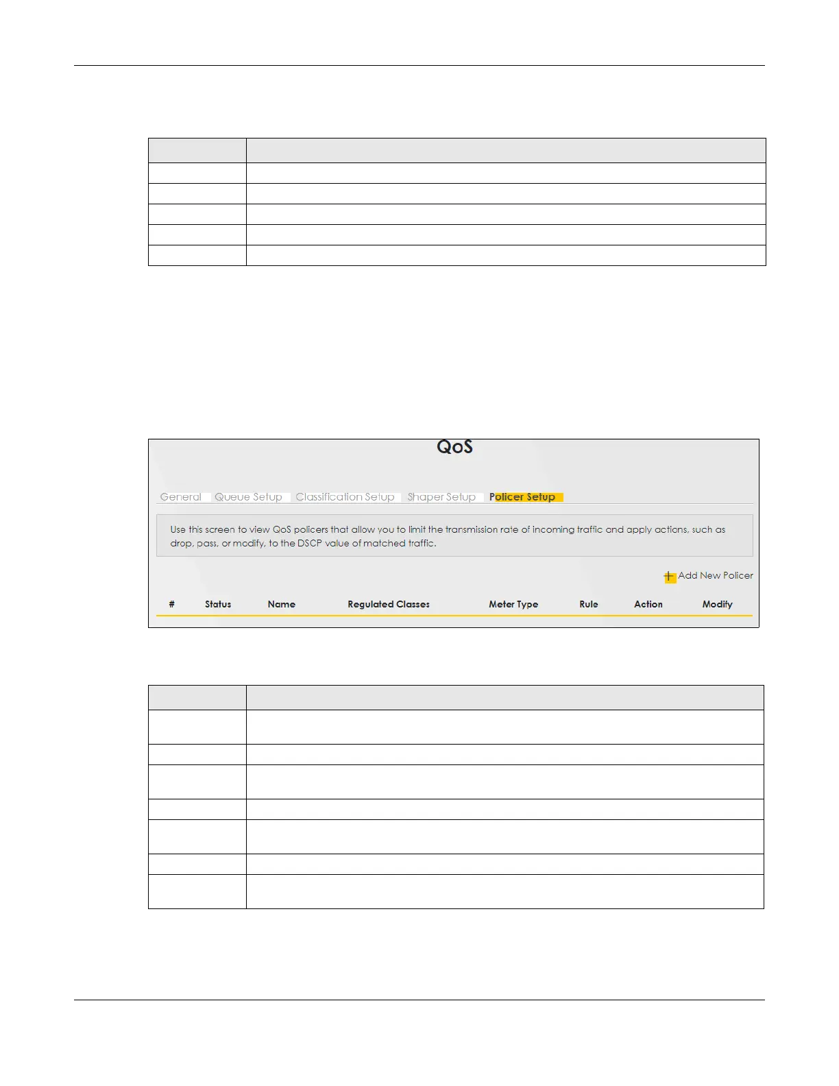 Use this screen to view QoS policers that allow you to limit the transmission rate of incoming traffic and