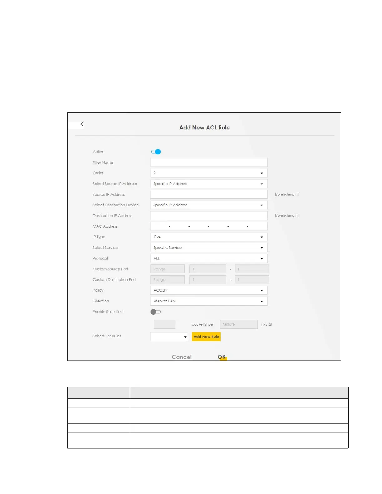 Active Click this switch to enable this ACL rule.