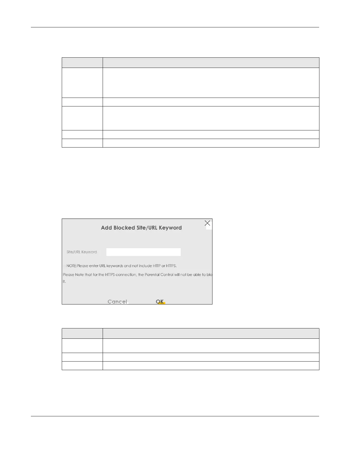 Table 121 Security > Parental Control > Add or Edit PCP > Add Keyword