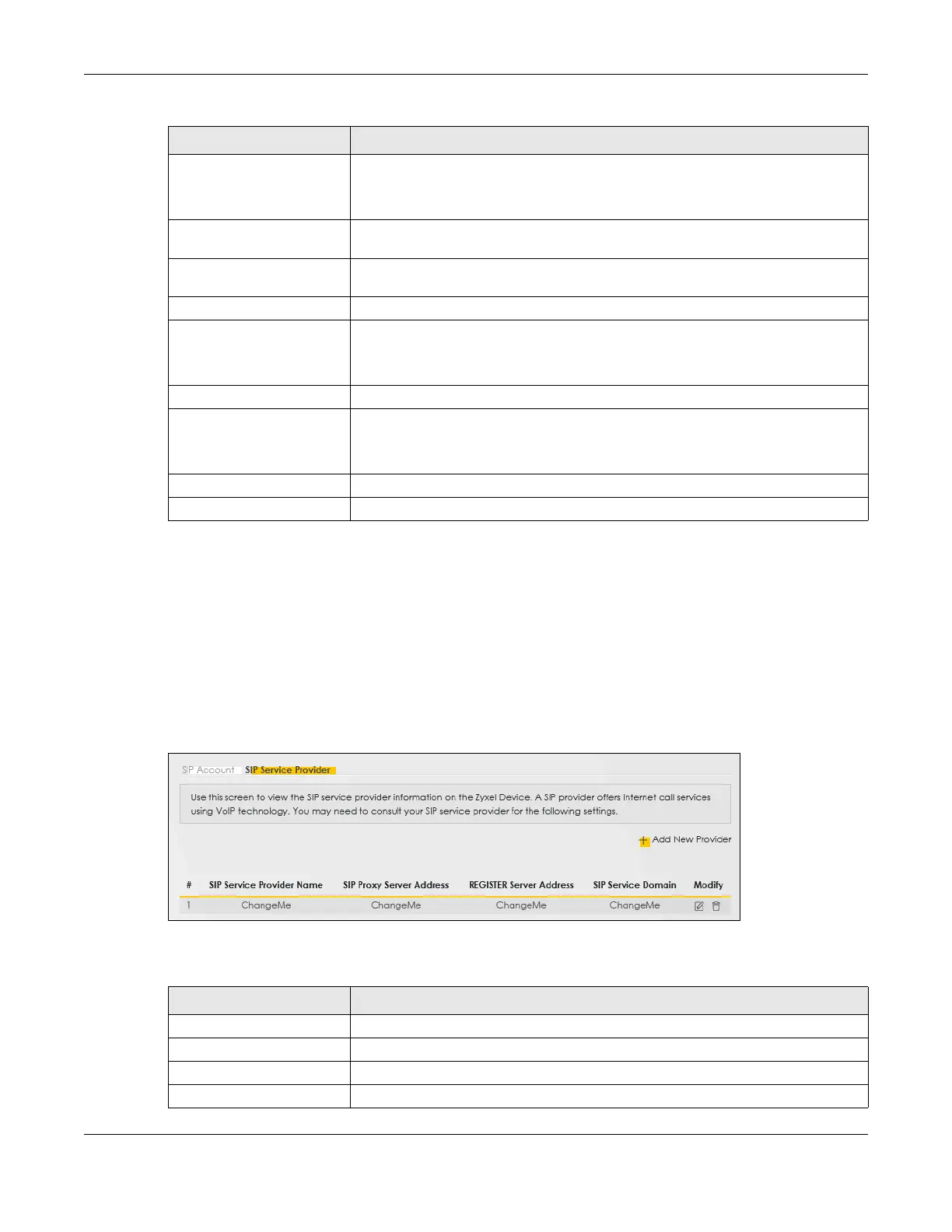 Table 132 VoIP > SIP > SIP Service Provider