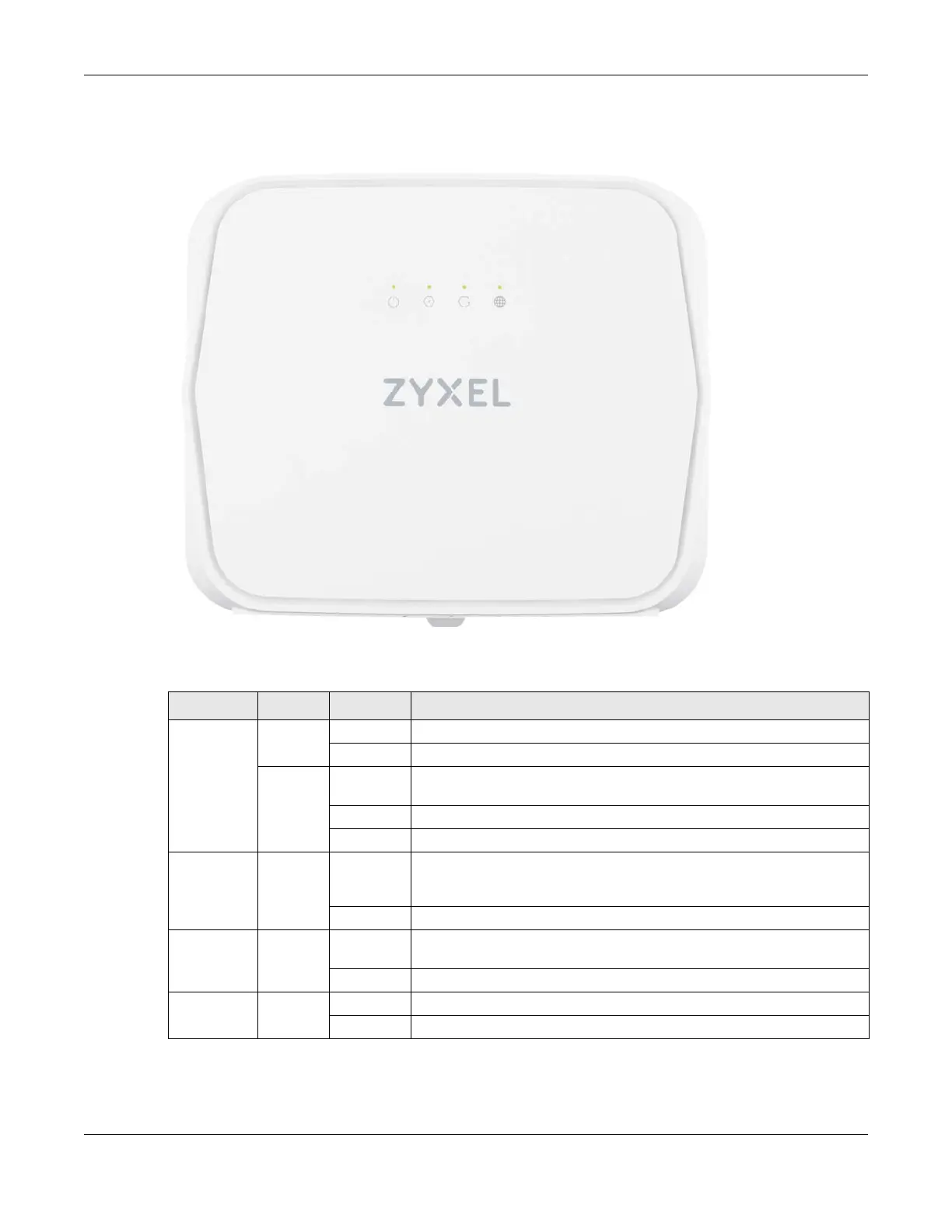 Power Green On The Zyxel Device is receiving power and ready for use.