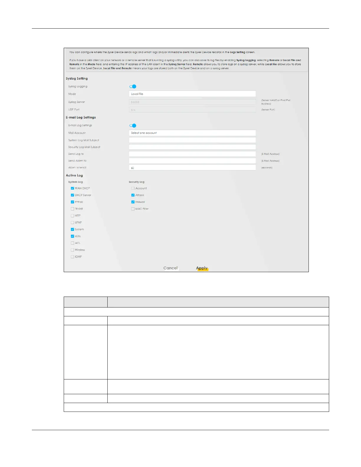 Mode Select Remote to have the Zyxel Device send it to an external syslog server.