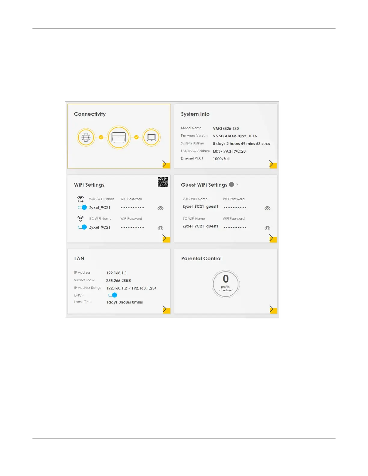 6 The Connection Status screen appears. Use this screen to configure basic Internet access and WiFi