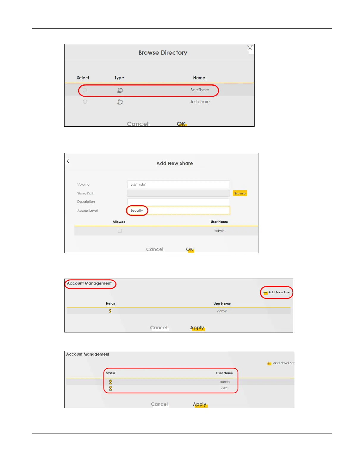 •In Access Level, select Public to let the share to be accessed by all users connected to the Zyxel