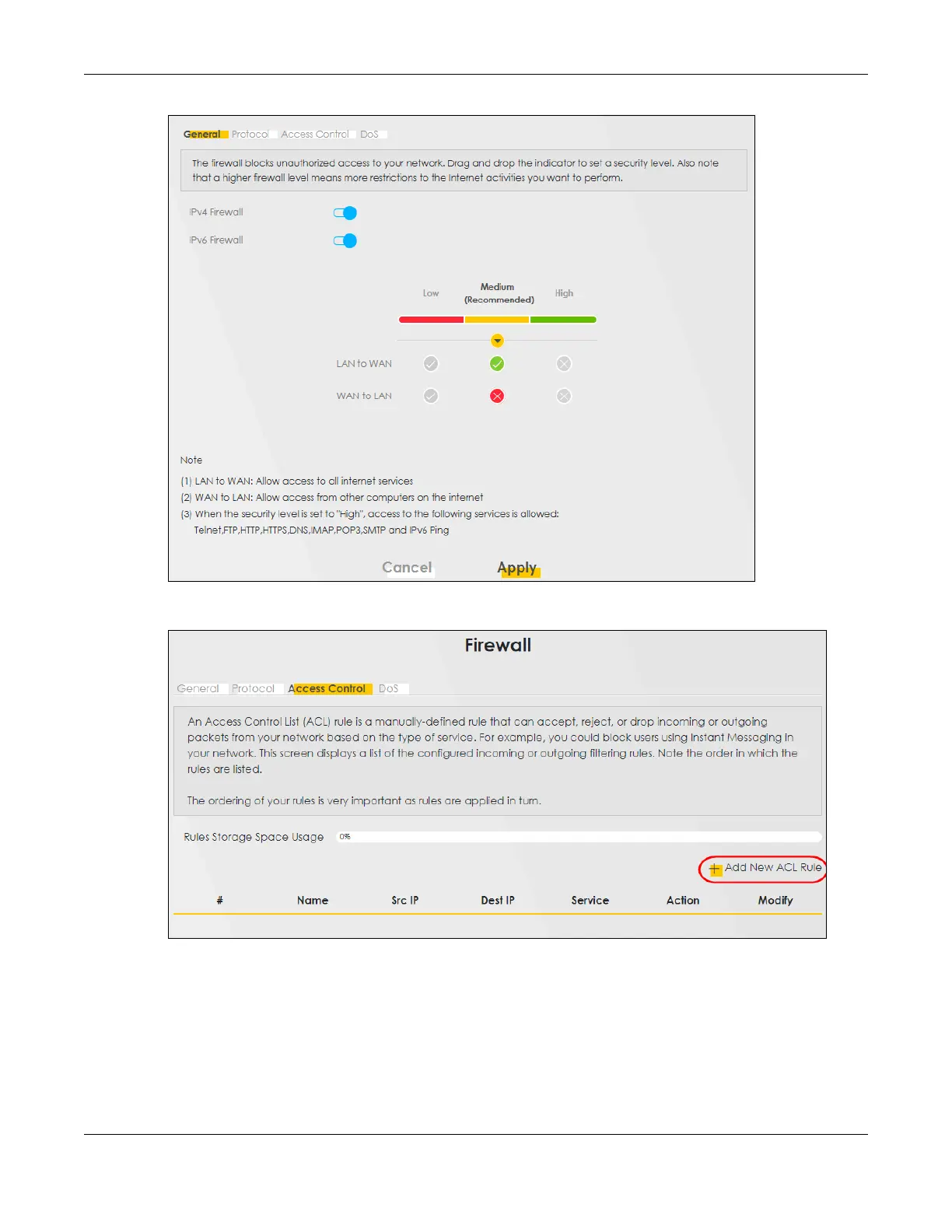 3 Open the Access Control screen, click Add New ACL Rule to create a rule.