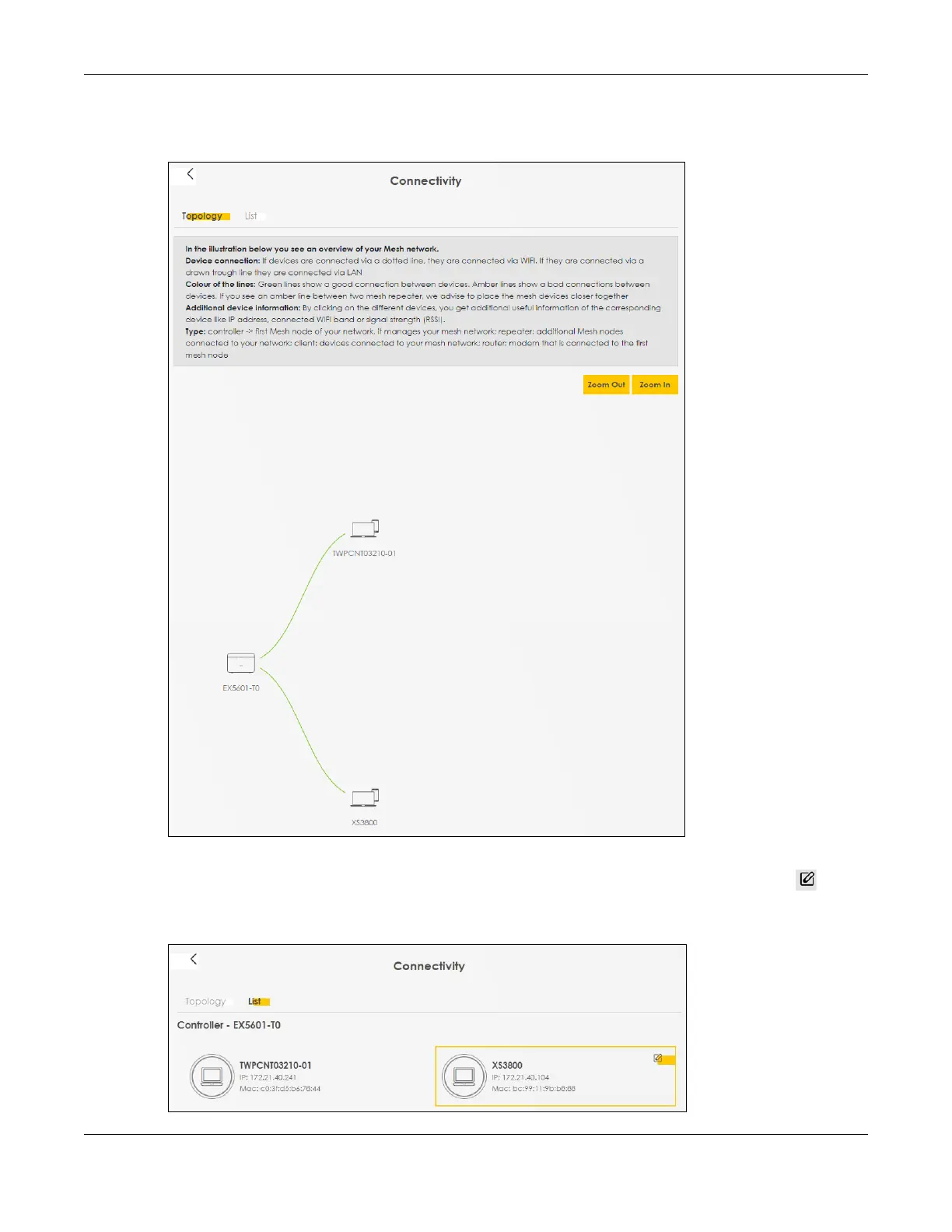 connected to the Zyxel Device. Place your mouse within the device block, and an Edit icon ( ) will
