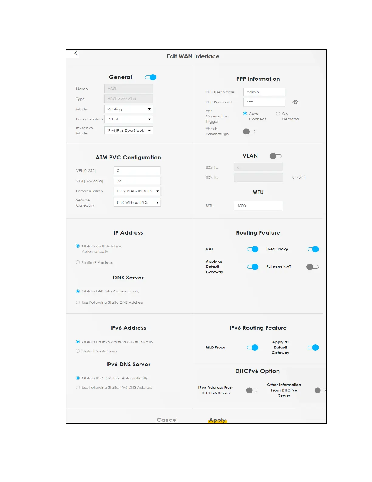 Figure 94 Network Setting > Broadband > Add or Edit New WAN Interface (Routing Mode)
