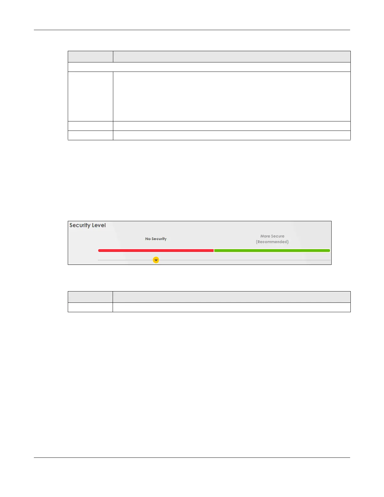 Security Level Choose No Security to allow all WiFi connections without data encryption or authentication.