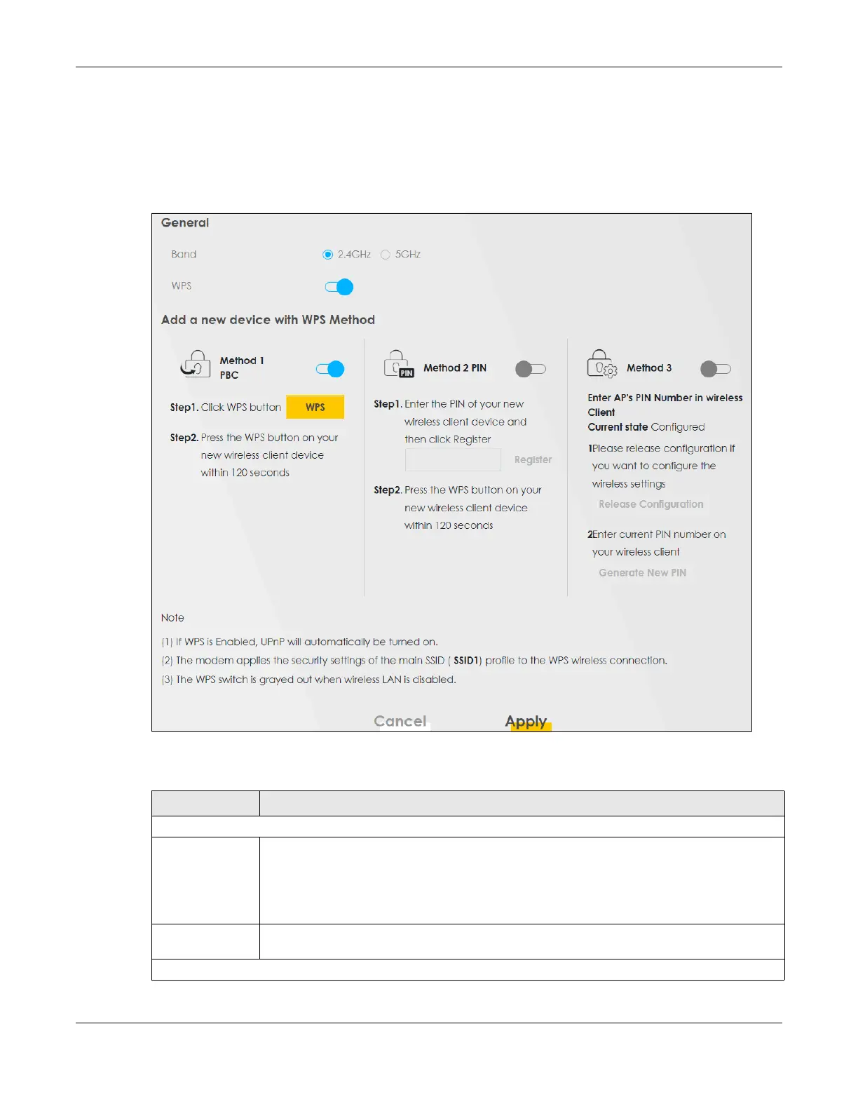 WPS Slide this to the right to enable and have the Zyxel Device activate WPS. Otherwise, it is