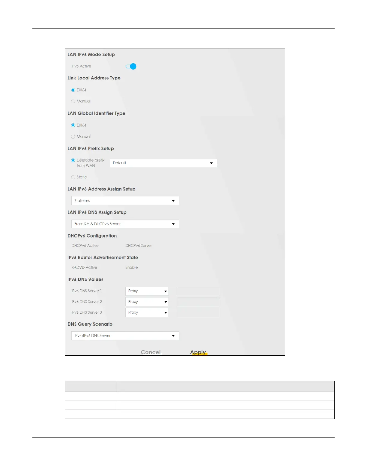 Table 69 Network Setting > Home Networking > LAN Setup