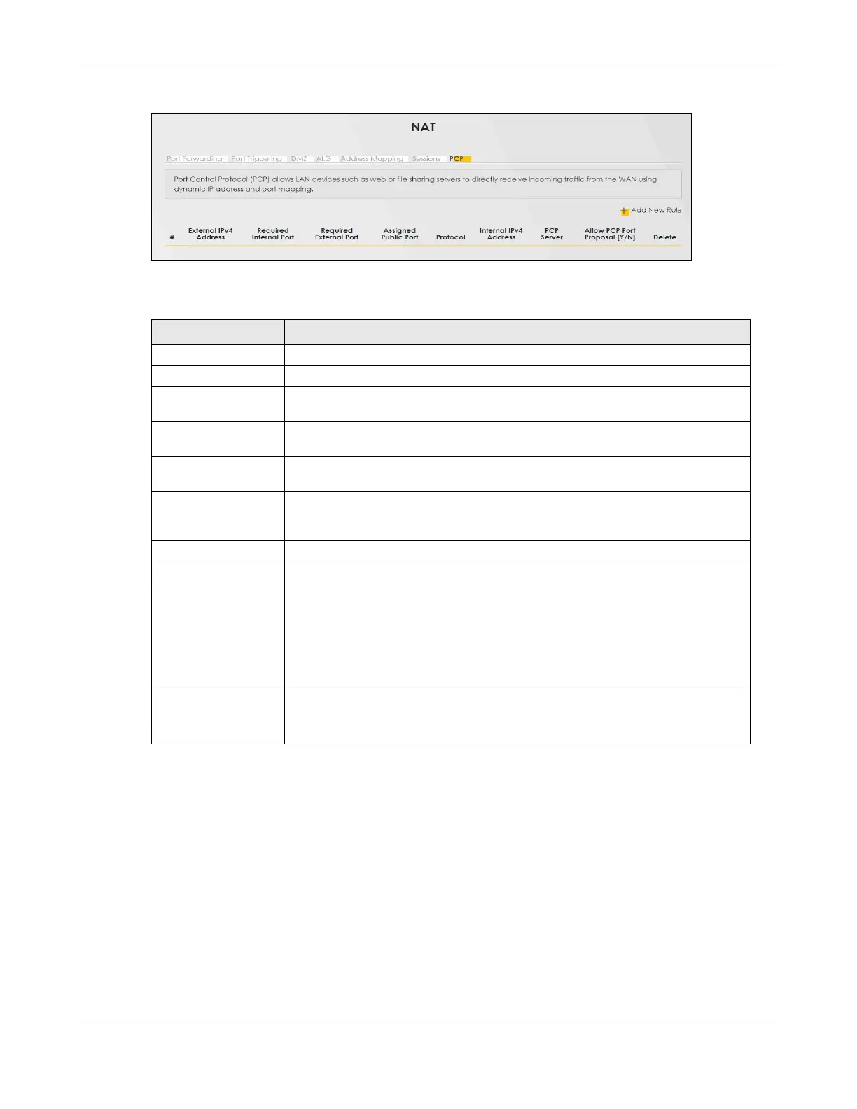 Required External Port This displays the proposed external port number that the PCP server maps from, to