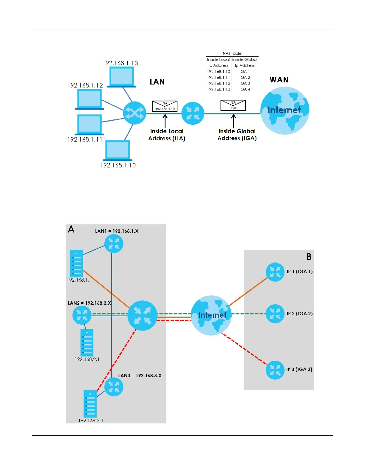 alias) behind the Zyxel Device can communicate with three distinct WAN networks.