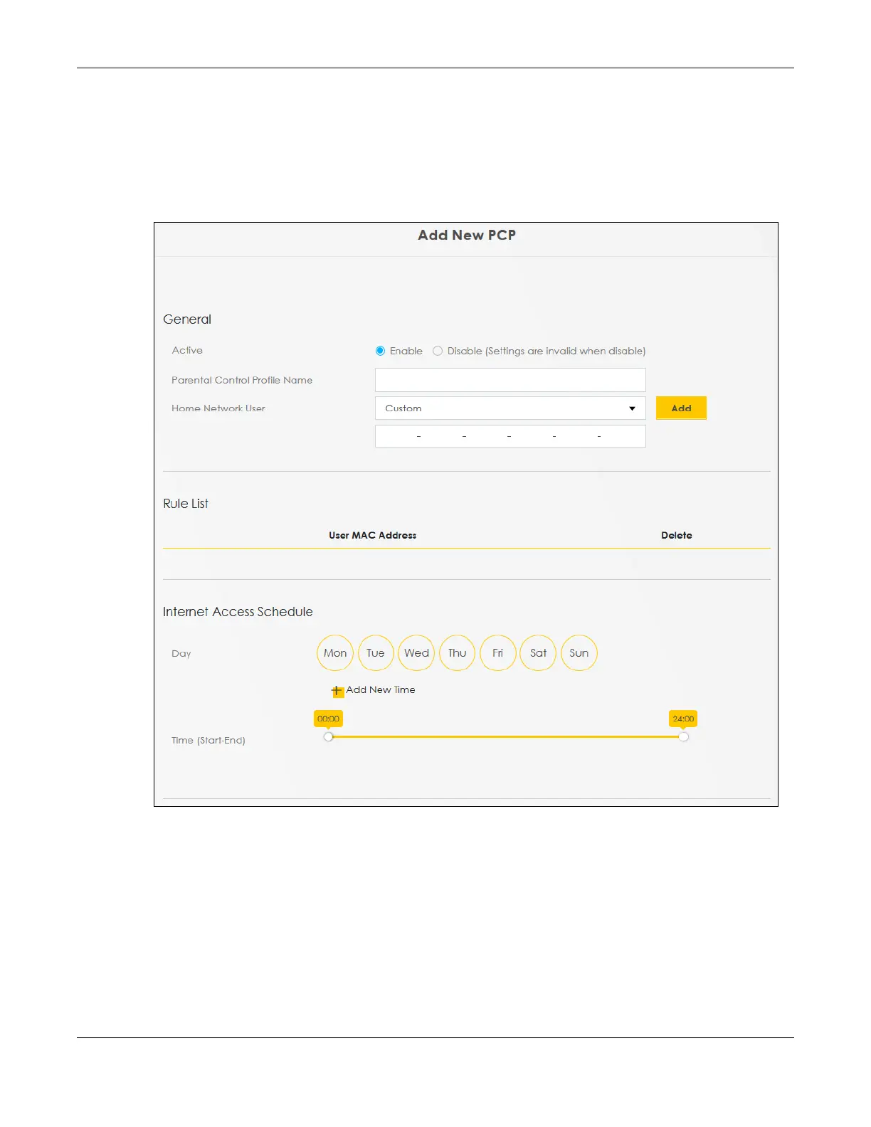 Click Add new PCP in the Parental Control screen to add a new rule or click the Edit icon next to an