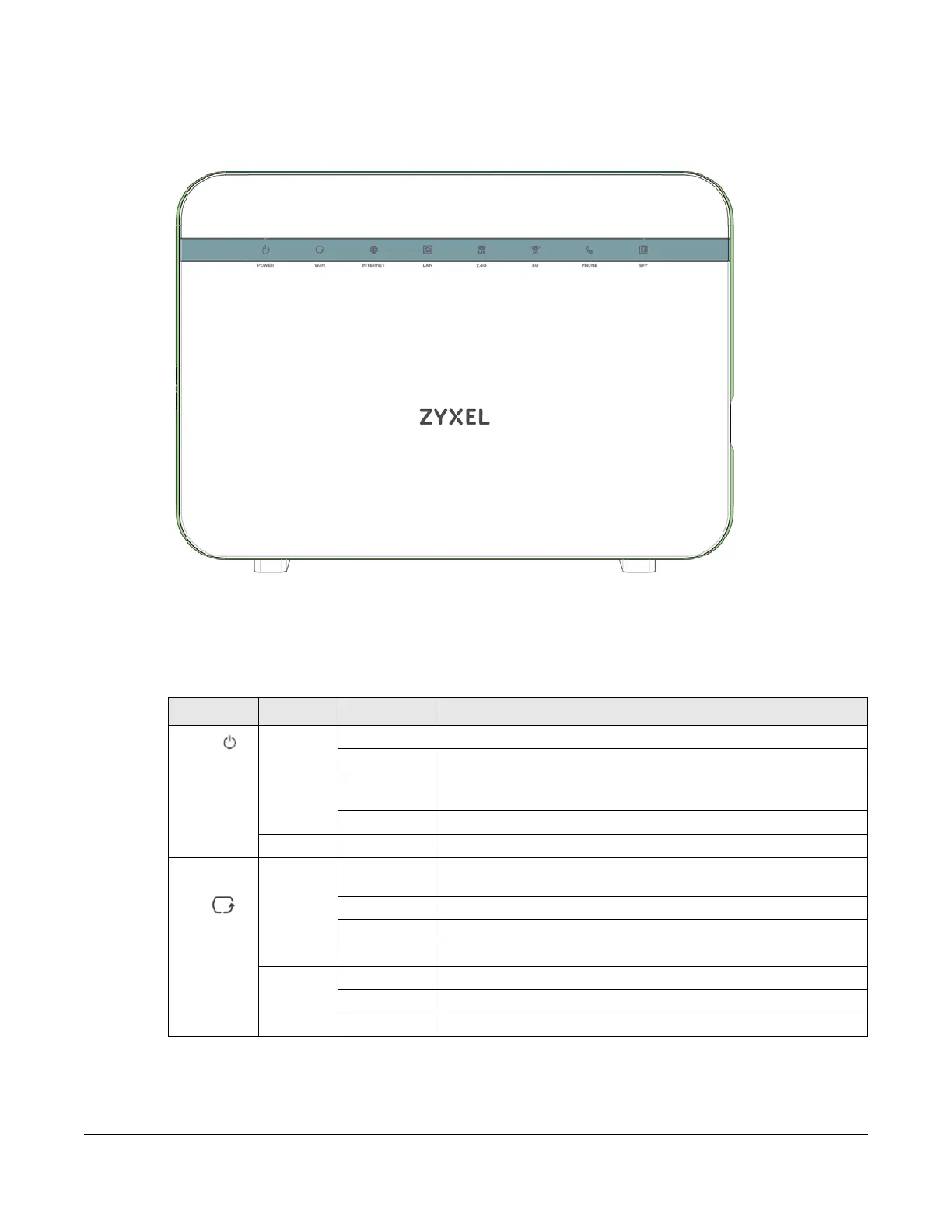Note: The phone LED is for the Zyxel Device with phone ports only; see Section 1.1 on page 19