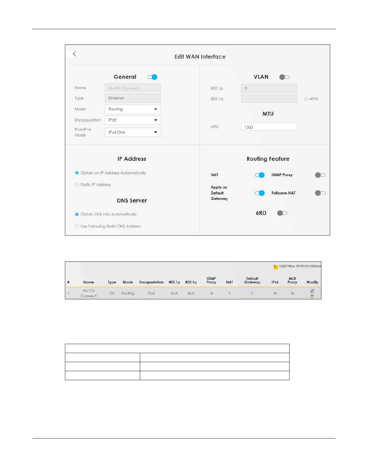 1 In this bridge mode example, configure the following information for the Ethernet WAN connection.