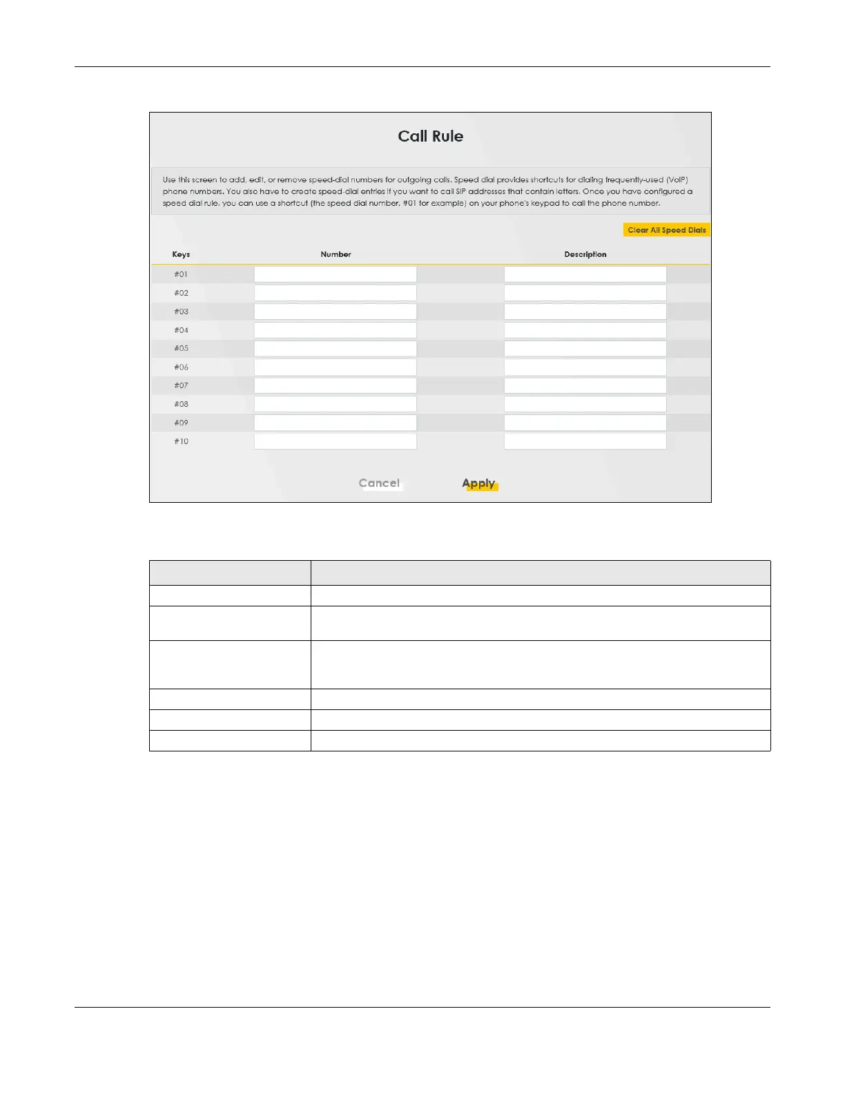 Number Enter the SIP number you want the Zyxel Device to call when you dial the speed-dial
