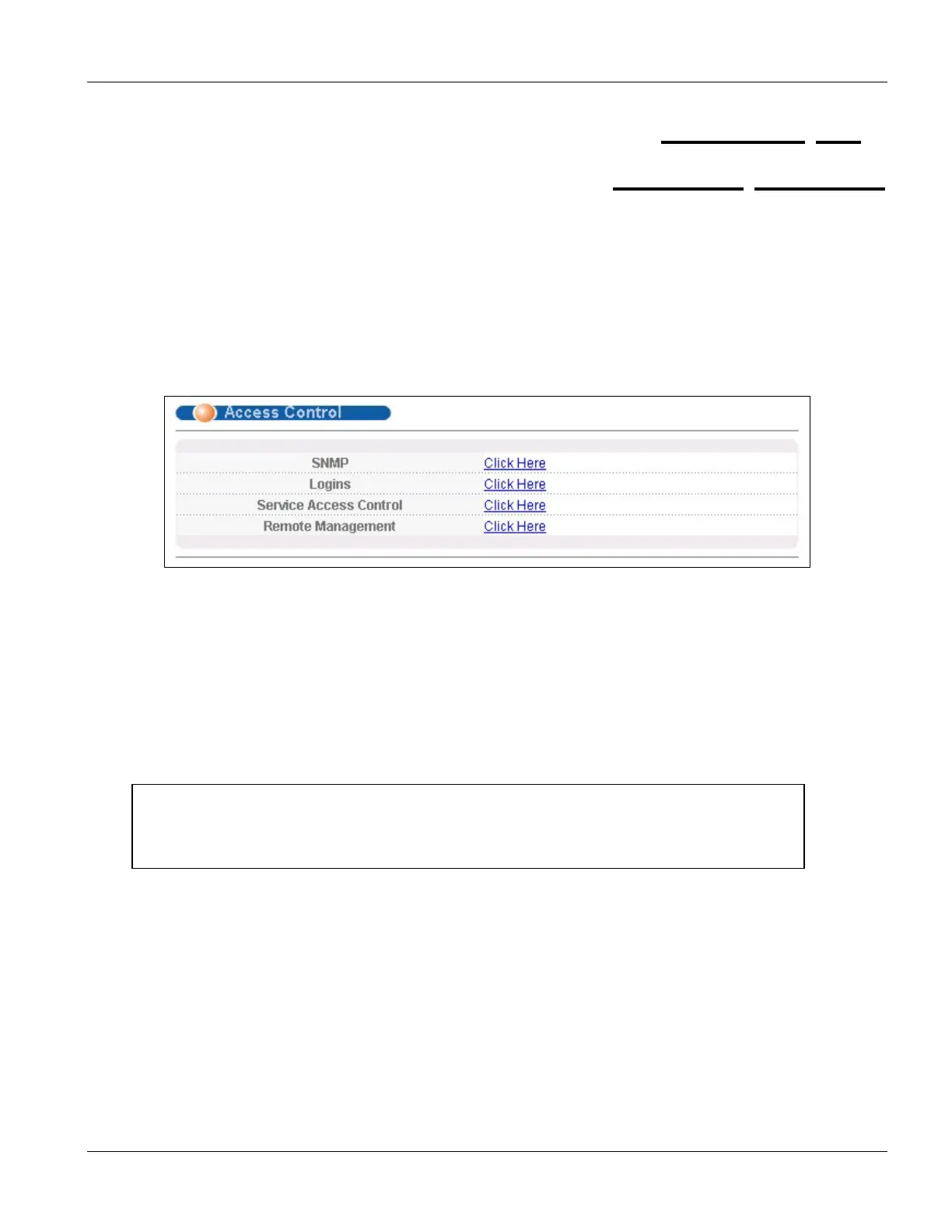 Click Access Control from the navigation panel to display the screen as shown. From this screen you can configure