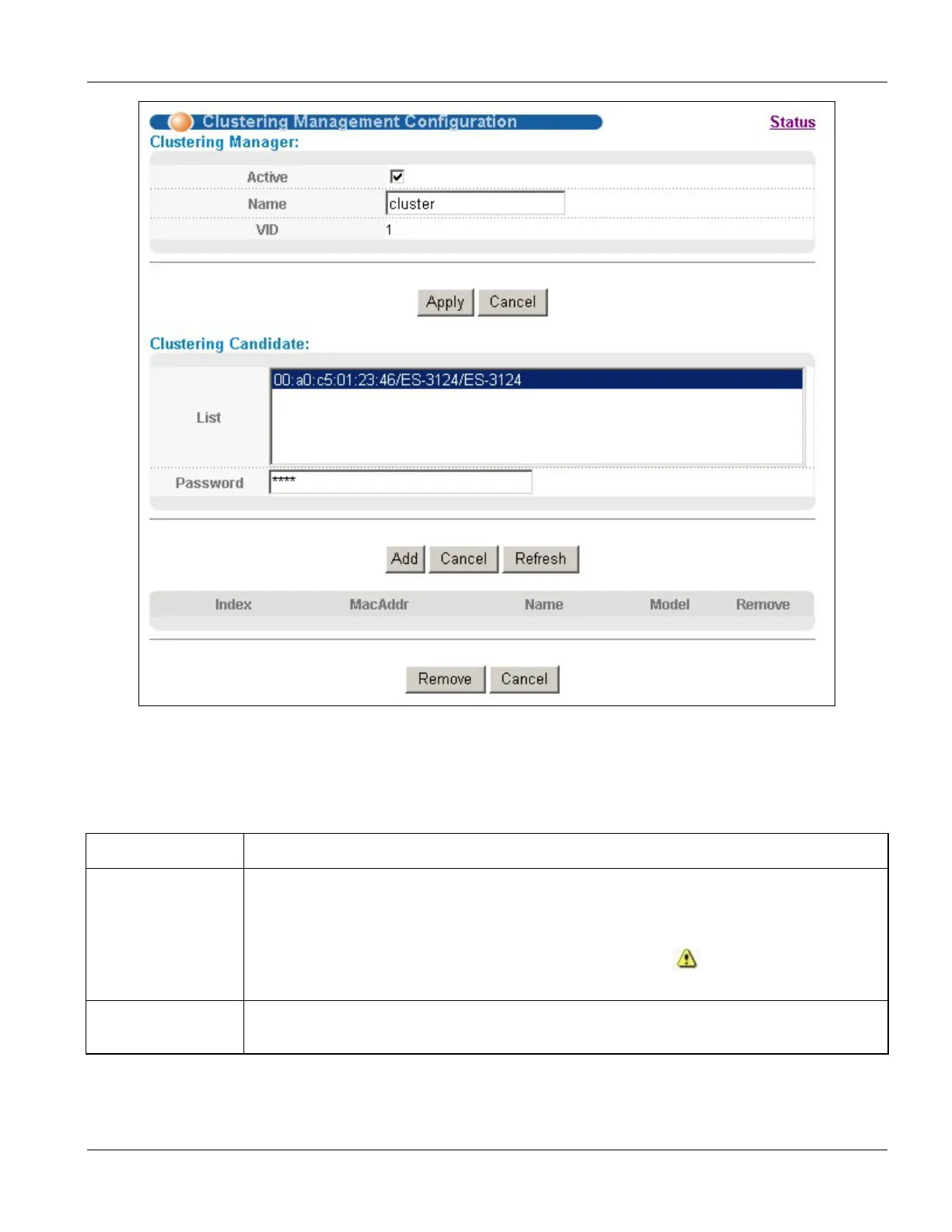 Name Type a name to identify the Clustering Manager. You may use up to 32 printable