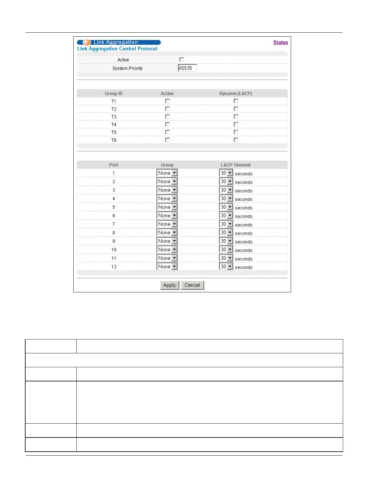 Active Select this checkbox to enable Link Aggregation Control Protocol (LACP).