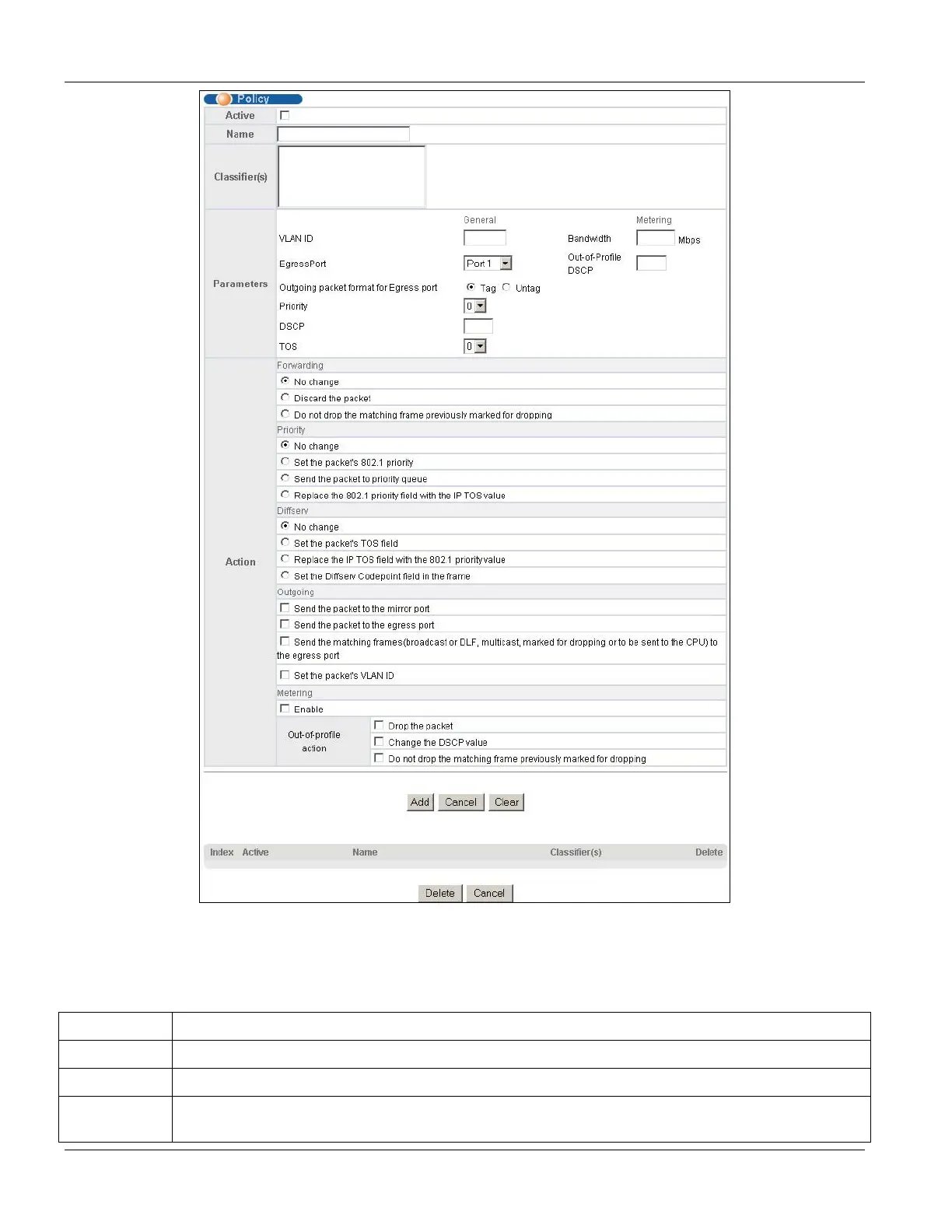 Classifier(s) This field displays the active classifier(s) you configure in the Classifier screen (refer to Chapter