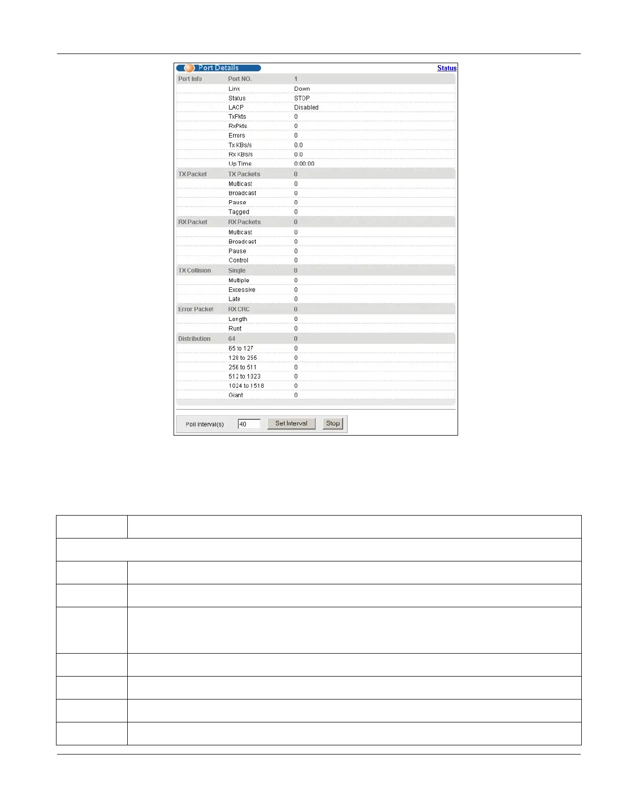 Link This field shows whether the port connection is down, and the speed/duplex mode.