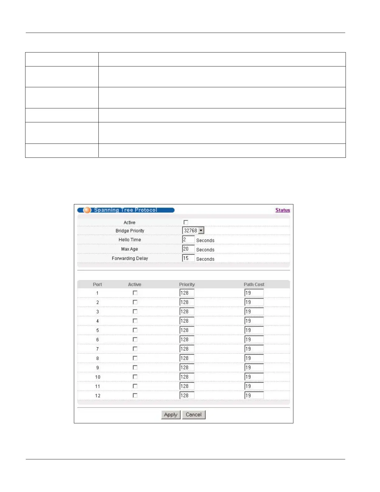 Figure 10-2 Spanning Tree Protocol: Configuration