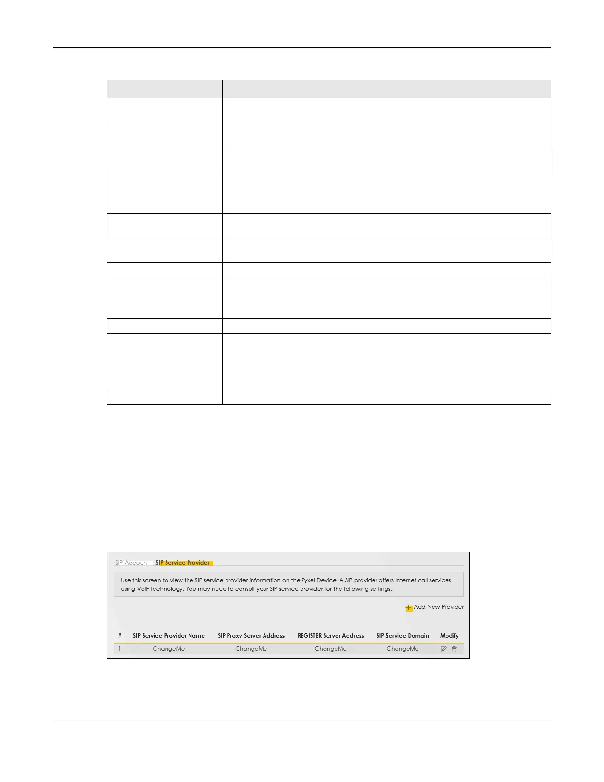 To access this screen, click VoIP > SIP > SIP Service Provider.