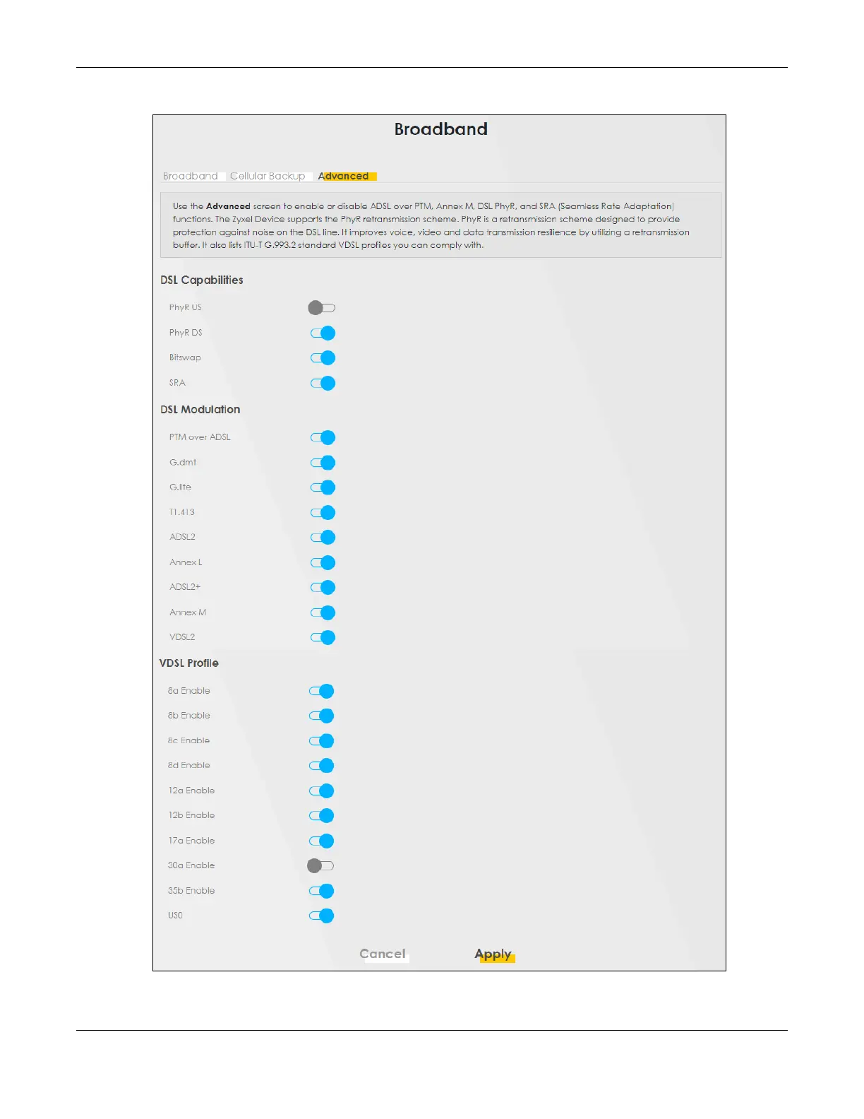 Figure 104 Network Setting > Broadband > Advanced