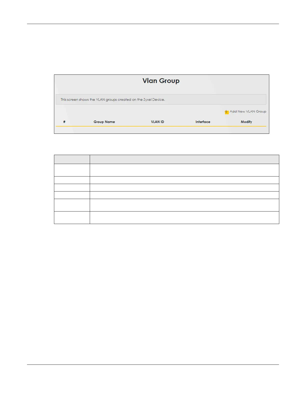 Modify Click the Edit icon to change an existing VLAN group setting or click the Delete icon to remove