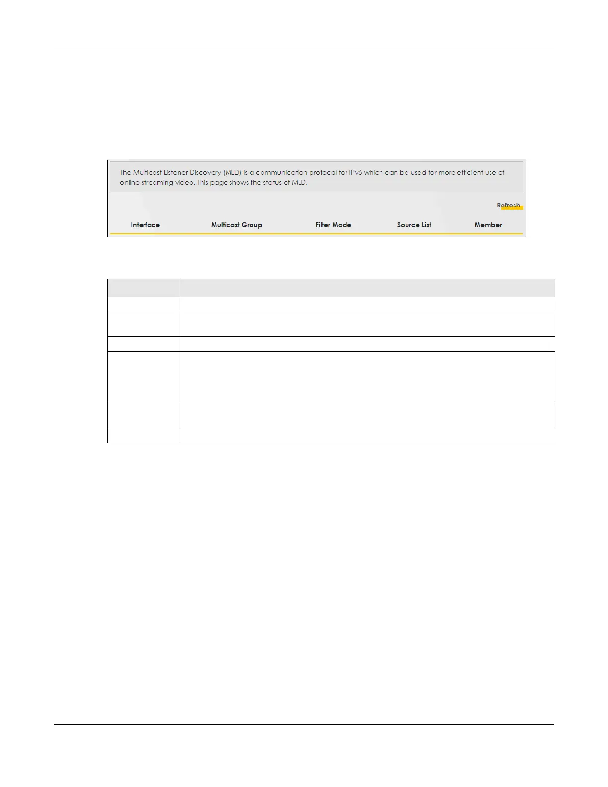 Interface This field displays the name of an interface on the Zyxel Device that belongs to an MLD multicast